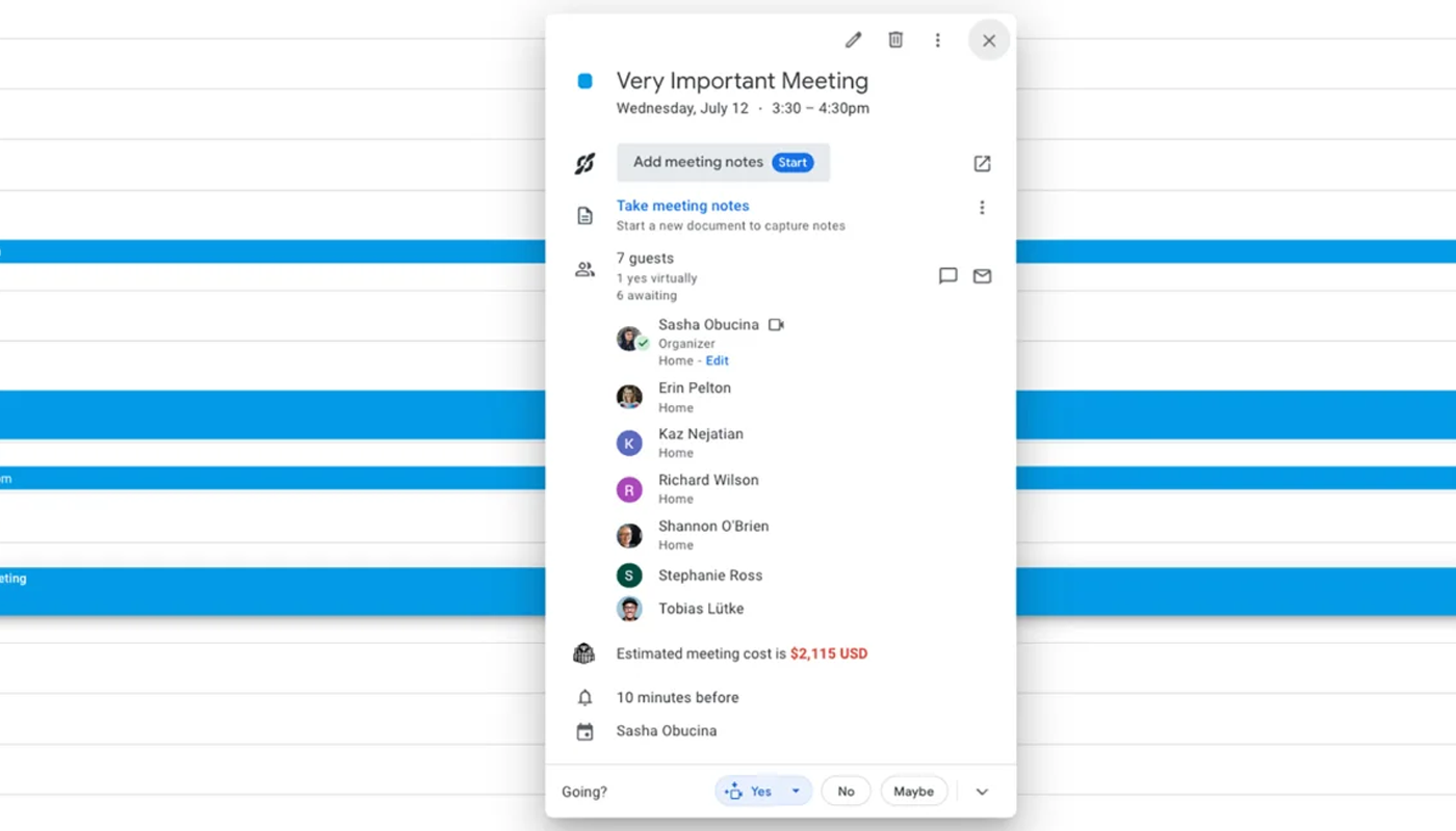 Alla sperimentazione si è aggiunto anche un Meeting Cost Calculator, uno strumento che calcola il costo economico stimato di ogni call in base al numero dei partecipanti e al tempo coinvolto.
