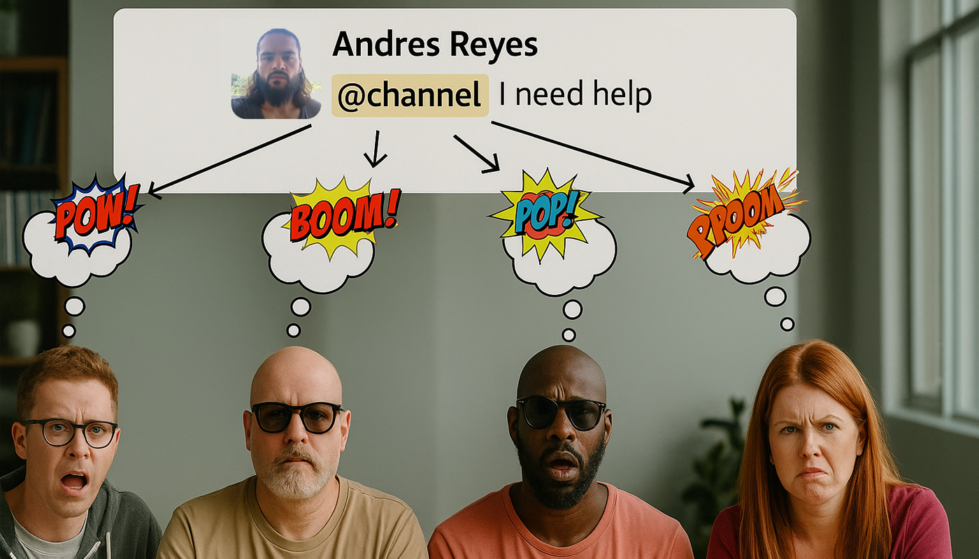 La questione delle menzioni è emblematica: servono davvero o no? L’abuso di @channel – che notifica tutti indistintamente – genera quella che potremmo chiamare una vera “@channel fatigue”. Anche l’uso impreciso delle @mention contribuisce al caos: se non sono mirate, i messaggi finiscono per perdersi, oppure obbligano decine di persone a leggere notifiche che non le riguardano.